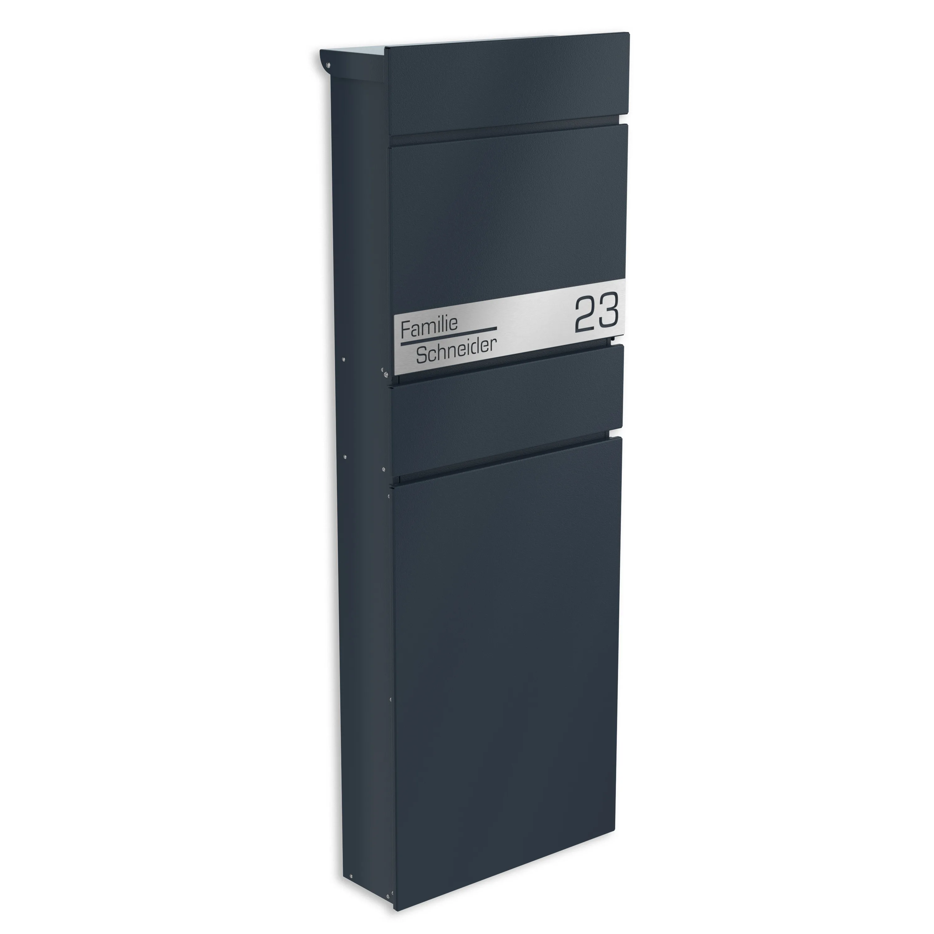 Freistehender Standbriefkasten mit Zeitungsfach und Edelstahl Namensschild | Capella