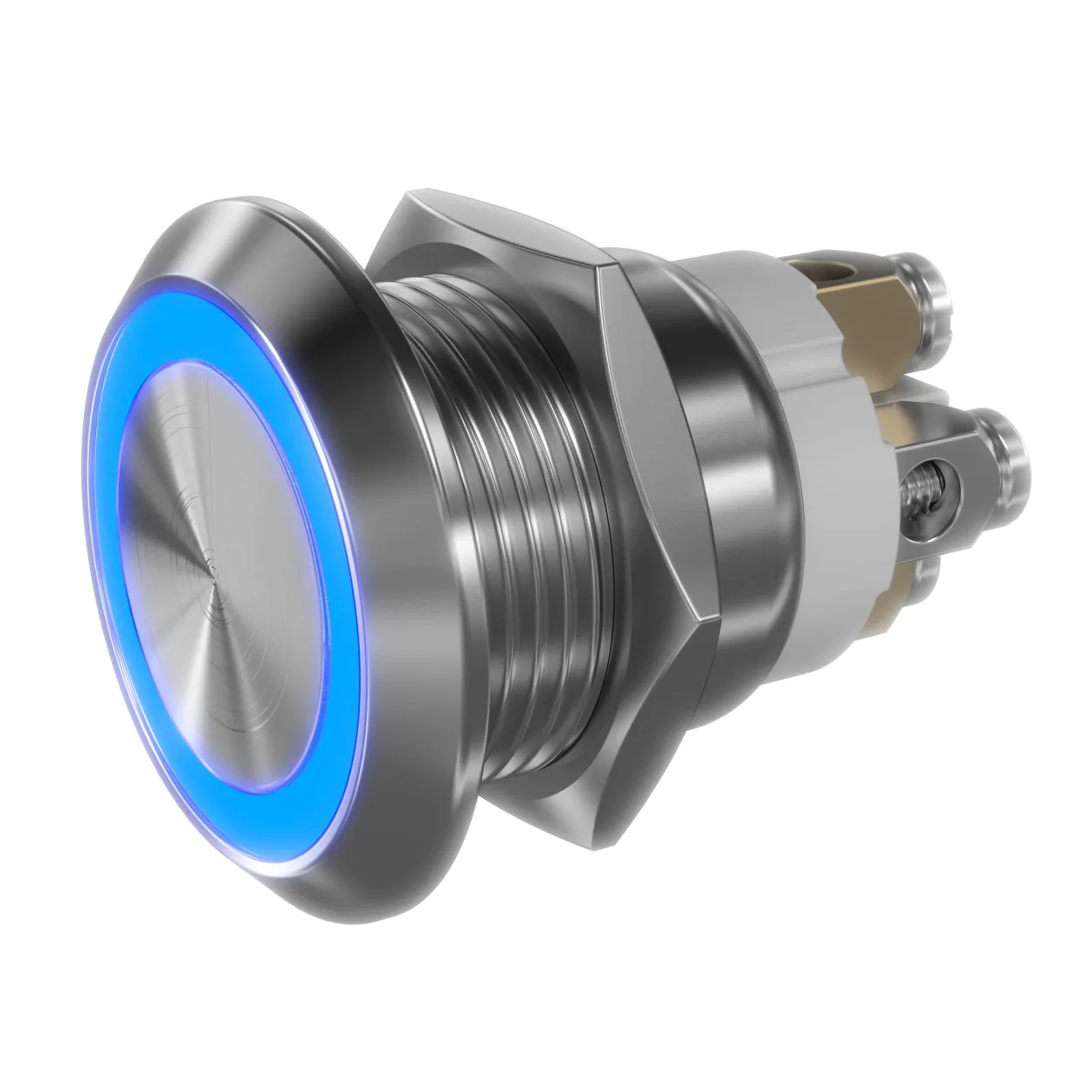 Wir wissen, dass jeder Hauseingang einzigartig ist. Deshalb bieten wir verschiedene Druckschalter an, damit Sie genau das Modell finden, das perfekt zu Ihrem Stil und Ihren Anforderungen passt. Ein besonderes Highlight unseres Sortiments ist der robuste und stilvolle 19mm Druckknopf mit blauer LED-Beleuchtung. Gefertigt aus erstklassigem Edelstahl, garantiert er Langlebigkeit und Widerstandsfähigkeit gegenüber Witterungseinflüssen, während die integrierte LED-Beleuchtung nicht nur für eine ansprechende Optik sorgt, sondern auch die Sichtbarkeit bei Dunkelheit verbessert. Als weitere elegante Option präsentieren wir den Drucktaster 19mm Slim. Dieses Modell aus Edelstahl zeichnet sich durch ein stilvolles Glockensymbol, eine helle weiße LED und einen praktischen Kabelanschluss aus. Seine besonders schlanke Bauform verleiht ihm eine moderne Ästhetik; die Länge kann dabei je nach Kabelführung zwischen 15 und 150 mm variieren. Für Liebhaber eines ausdrucksstarken Designs empfehlen wir den Slim-Taster mit einer markanten, leuchtend roten LED. Gerne können Sie bei Fragen zu unseren Produkten über unsere Online-Seite den Kontakt zu uns aufnehmen.